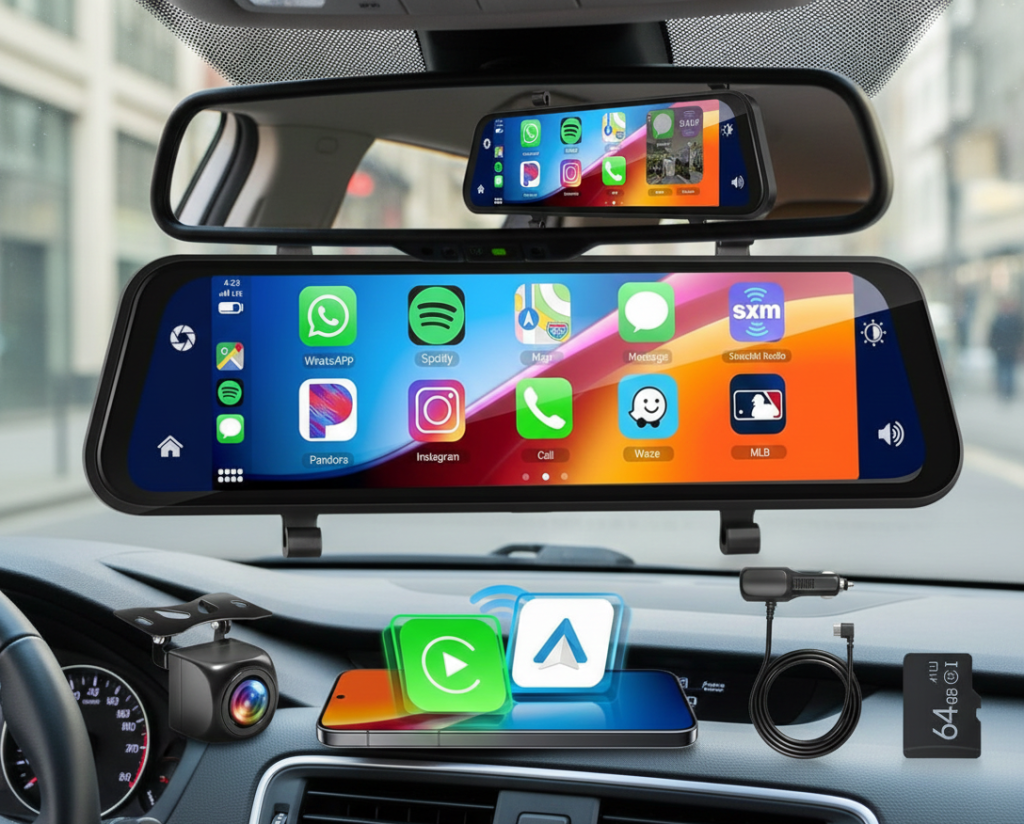 A smart car mirror that ensures clear vision and safer driving, featuring a sleek and modern design.